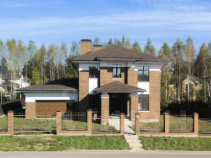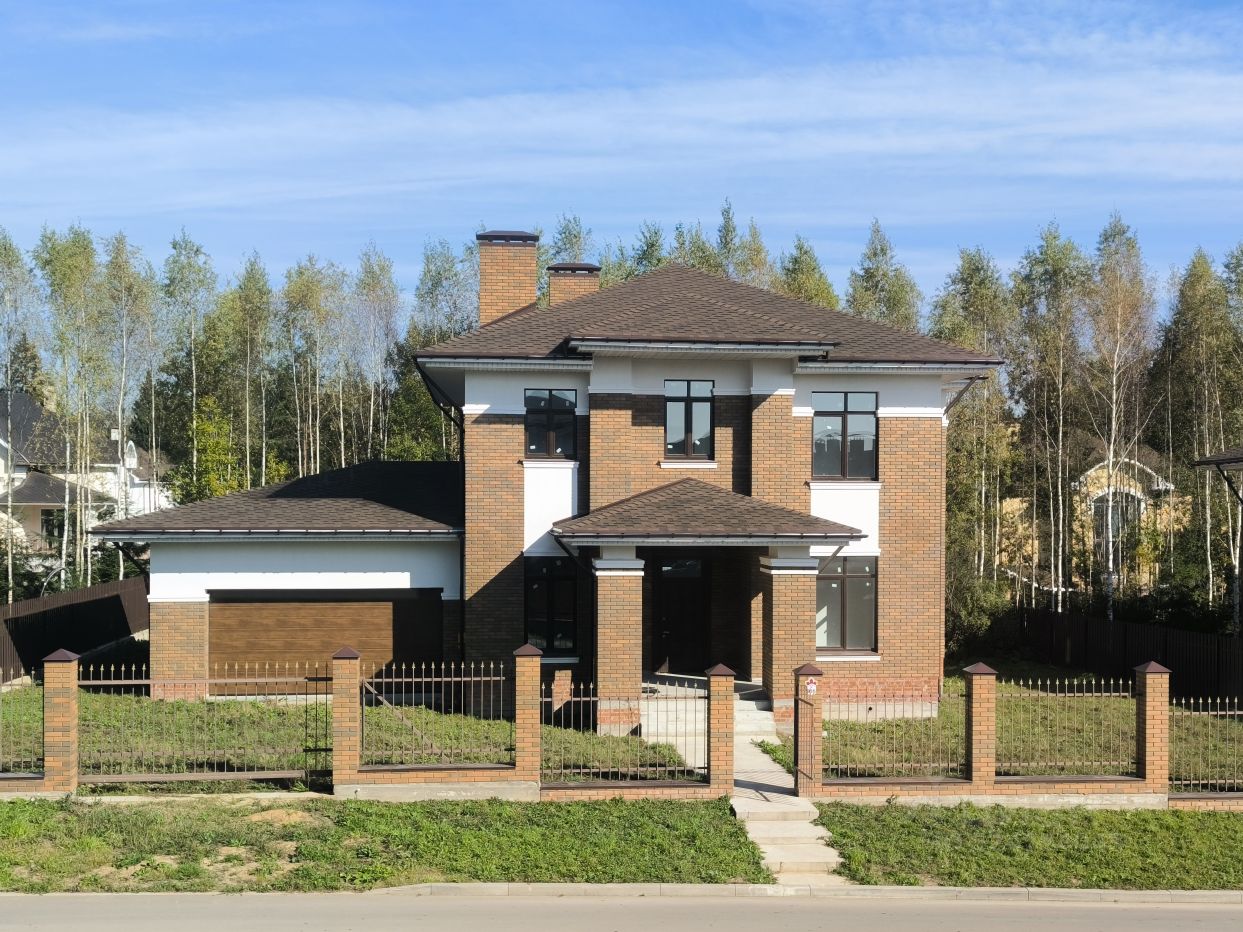 Новый дом 310 кв.м. (с гаражом) на участке 10 соток с отделкой "ПОД КЛЮЧ", в жилом поселке бизнес-класса "Монреаль". Дом полностью ГОТОВ К ПРОЖИВАНИЮ, выполнена отделка из качественных материалов, монолитная лестница отделана Ясенем, высота потолков в чистоте 3.4 м. Дом построен в стиле Райт, стены выполнены из керамического блока; при отделке фасада использовался облицовочный кирпич Braer "Баварская кладка", фасадная штукатурка и элементы декора; монолитный фундамент; ж/б перекрытия; пол утеплен пеноплекс, пенофол, смонтирован водяной подогрев пола, выполнена коллекторно-лучевая разводка отопления. В доме работает: газовое отопление, функционирует горячая, холодная вода, центральная канализация, интернет. Планировка: 1-ый этаж прихожая, котельная, гараж на 2 автомобиля с хозблоком, санузел, прачечная, кухня/гостиная, комната, терраса.; 2-ой этаж: спальня с гардеробной, спальня с гардеробной, мастер-спальня с гардеробной и санузлом, отдельный санузел, холл. Поселок построен в едином архитектурном стиле и оснащен всеми коммуникациями. В шаговой доступности: магазины, загородный клуб "Лачи", конно-спортивный клуб, спортивный комплекс. Школа в 5 км от посёлка (ходит школьный автобус). ИЖС, ПМЖ, прописка (регистрация) Москва. Ипотека.