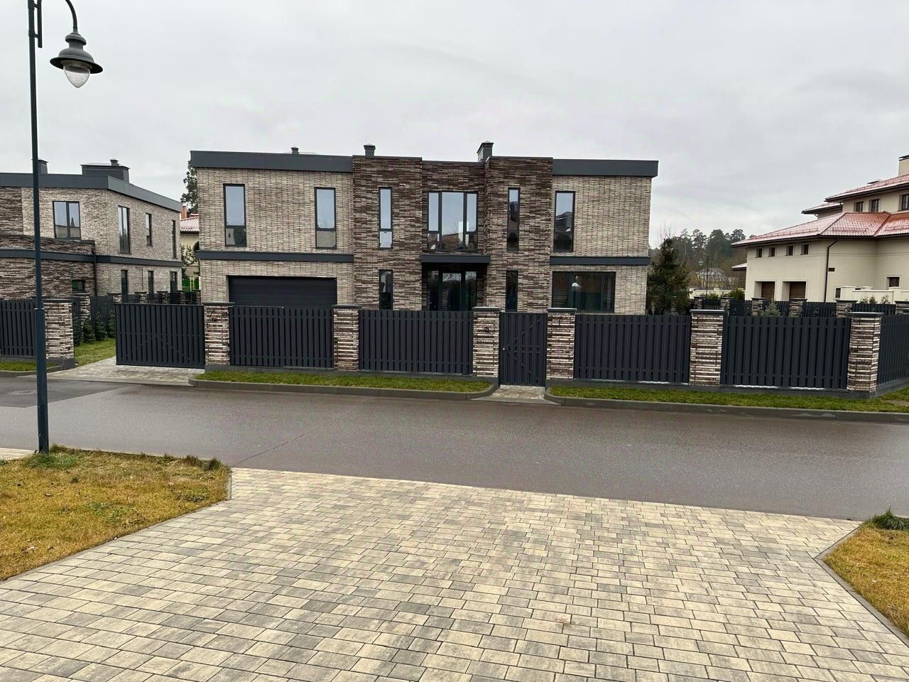 На первом этаже располагается гардероб при входе в дом, гостиная/зал с камином, большая кухня-столовая, с отдельной технической кухней, спальная комната с собственным санузлом, котельная, подсобное помещение.