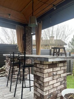 Участок за домом :беседка и кемпинг, зона для барбекю, что создает идеальные условия для отдыха на свежем воздухе и проведения времени с семьей и друзьями.
