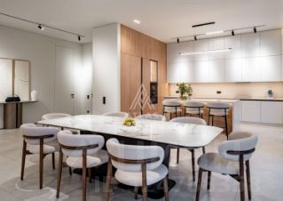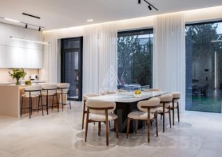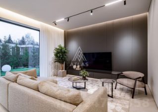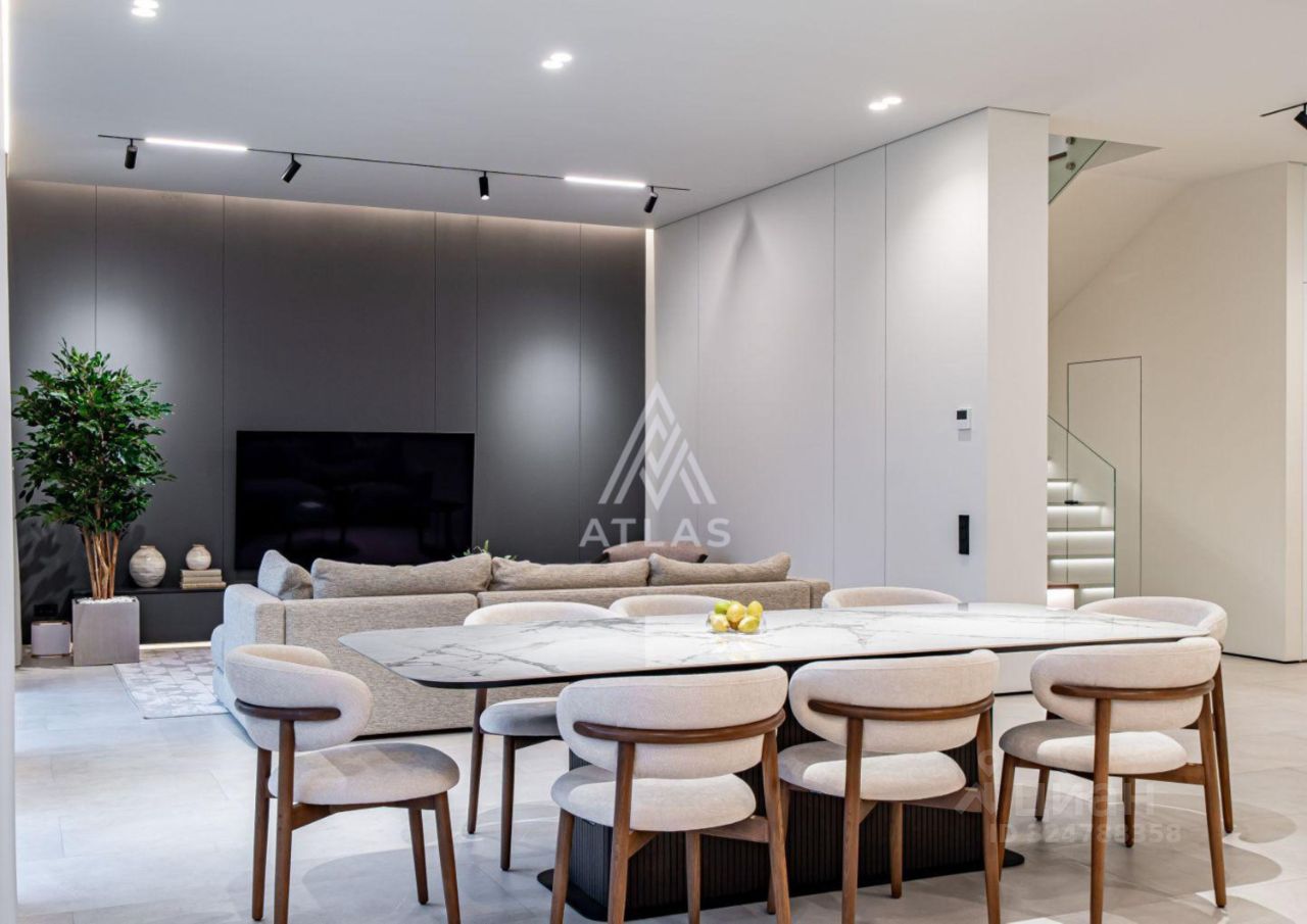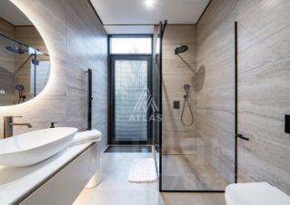 Дом площадью 350 м² с 5 спальнями расположен на прилесном участке 11,44 сотки в коттеджном посёлке Александрово. Мягкий ритм архитектурных линий, панорамные окна и спокойные оттенки создают ощущение светлой открытости и связи с природой.