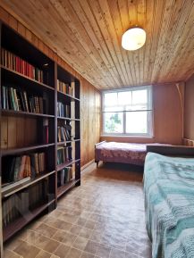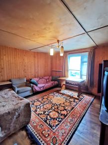 Двухэтажный дом с балконом, вологодский сруб (бревна до полуметра в диаметре), изнутри обшит вагонкой.