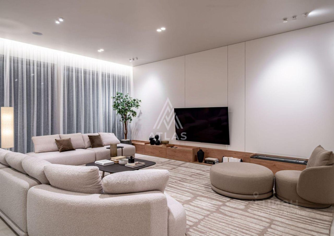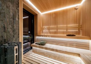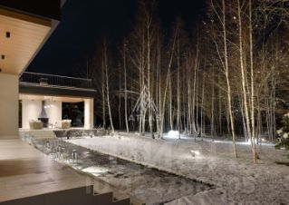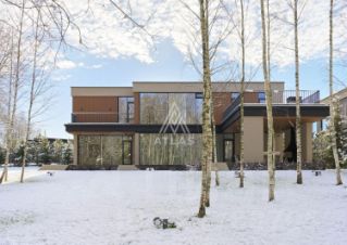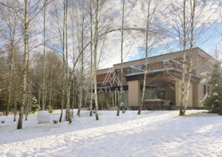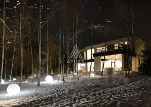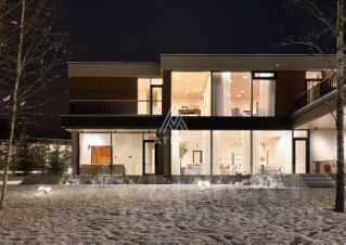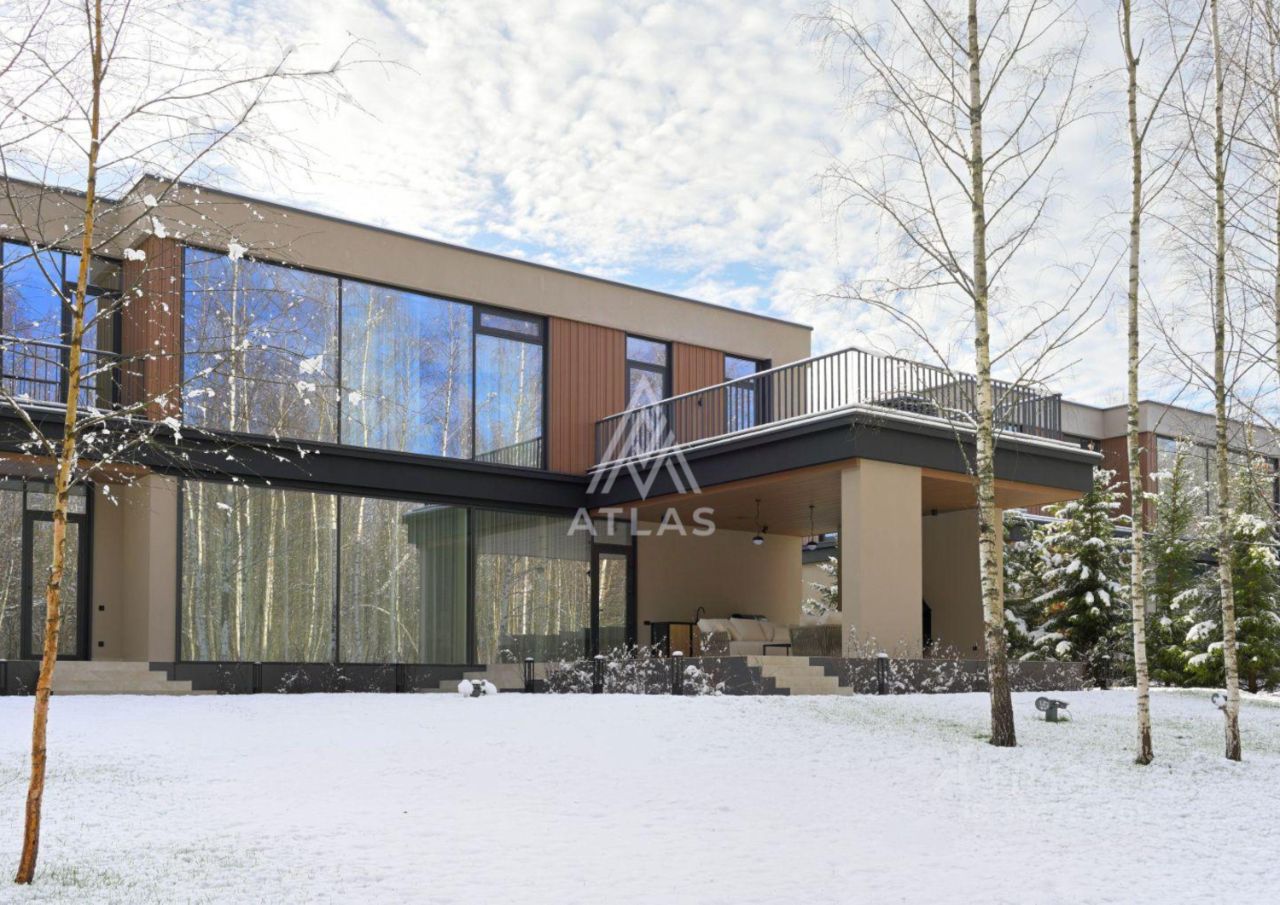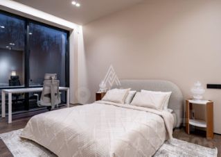 Дом площадью 628 м² с 5 спальнями расположен на лесном участке 20,48 соток в КП Александрово на Новой Риге.Панорамное остекление открывает вид на лес, придавая интерьеру тишину и ощущение уединённости.