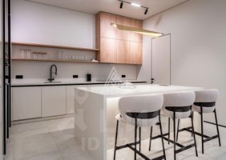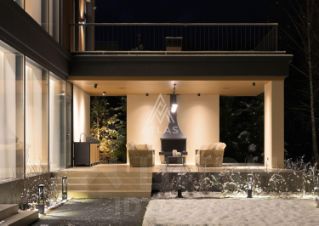 Дом построен в современном стиле из качественных материалов. Интерьер выполнен под ключ и тщательно укомплектован мебелью индивидуального производства, что создаёт цельную визуальную среду. Высокие потолки и большая площадь остекления усиливают ощущение воздуха, а мягкие тактильные отделки добавляют тепла.