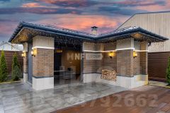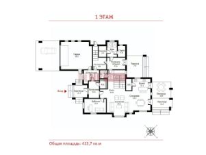 1 этаж: холл, гостиная-кухня-столовая с выходом на застекленную террасу и в сад, с/у, спальня, Спа-зона: сауна, хамам, душевые, комната отдыха; тех. помещение (кладовка), котельная, постирочная; гараж -вход-выход в дом и на крыльцо. С отдельным входом студия для персонала;
