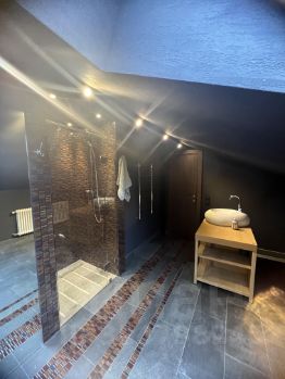 Дом построен с глубочайшим пониманием эстетики: массивные деревянные балки, натуральный камень, сложные крыши и панорамное остекление создают неповторимую атмосферу горного курорта, сочетая ее с современным уровнем комфорта.