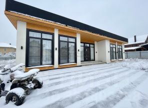 Одноэтажный дом в стиле минимализм с элементами сканди и хай-тек, построен в 2025 году на монолитной плите, с абсолютно новым дизайнерским ремонтом. По всей площади — водяной тёплый пол, окна Rehau в пол и парящие потолки создают особую атмосферу пространства и уюта.