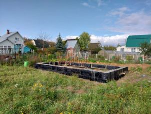 Участок 6.1 сот., прямоугольной формы, сухой. На участок подведено электричество 15кВт. На участке заложен фундамент с запланированным погребом. Устроена гидроизоляция. Ширина фундамента 60 см, а глубина залегания составляет 1.8 метра. По периметру фундамента сделан дренаж. На территории участка есть бытовка для хранения инструментов.