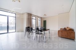 Мебель, оборудование: на кухне установлен гарнитур глубокого оливкового цвета (6 м) со встроенной техникой (холодильник DML, посудомоечная машина Bosch, электрическая плита и духовка AEG), столовая группа. В доме есть диван и две кровати. В санузлах мебель и сантехника марки GROHE и других зарубежных производителей.