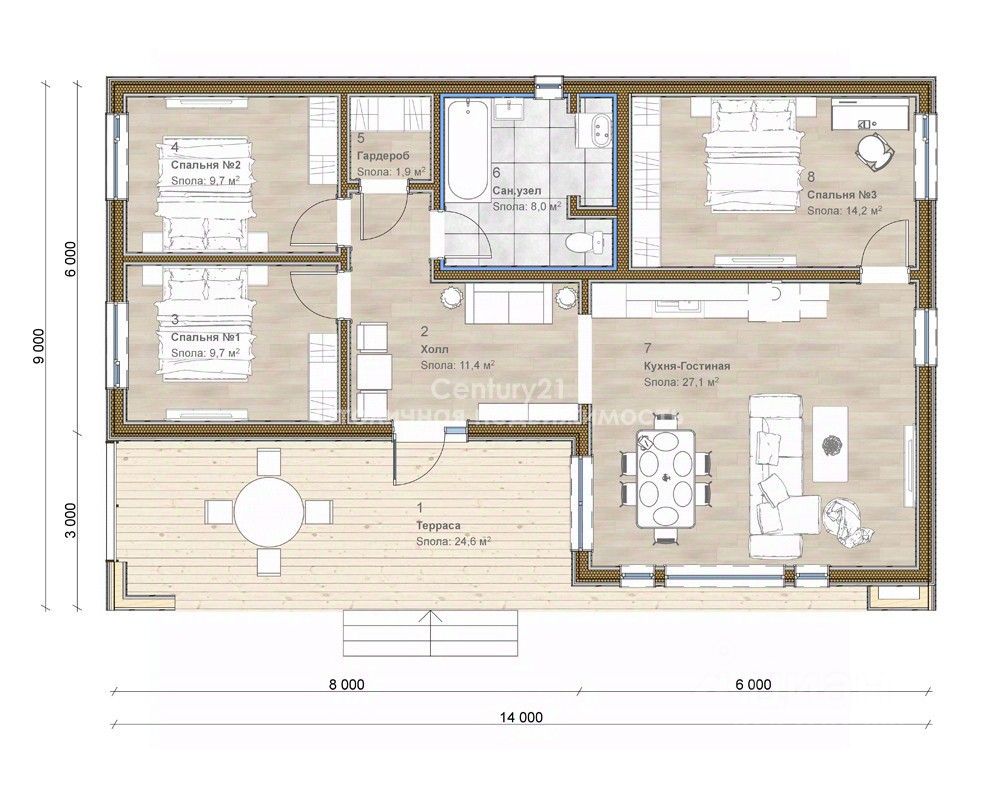 Выверенная планировка - 3 спальни, 1 санузел гардеробная, кабинет, гостиная-столовая 40м2, терраса!