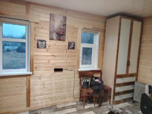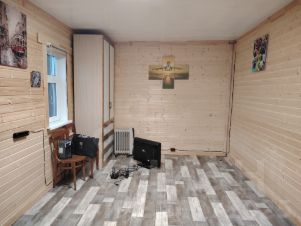 Имеется комната 15 кв.м и террасса-кухня 10 кв.м. Комната отделана вагонкой, установлены окна ПВХ, хорошая входная дверь. Газ привозной.