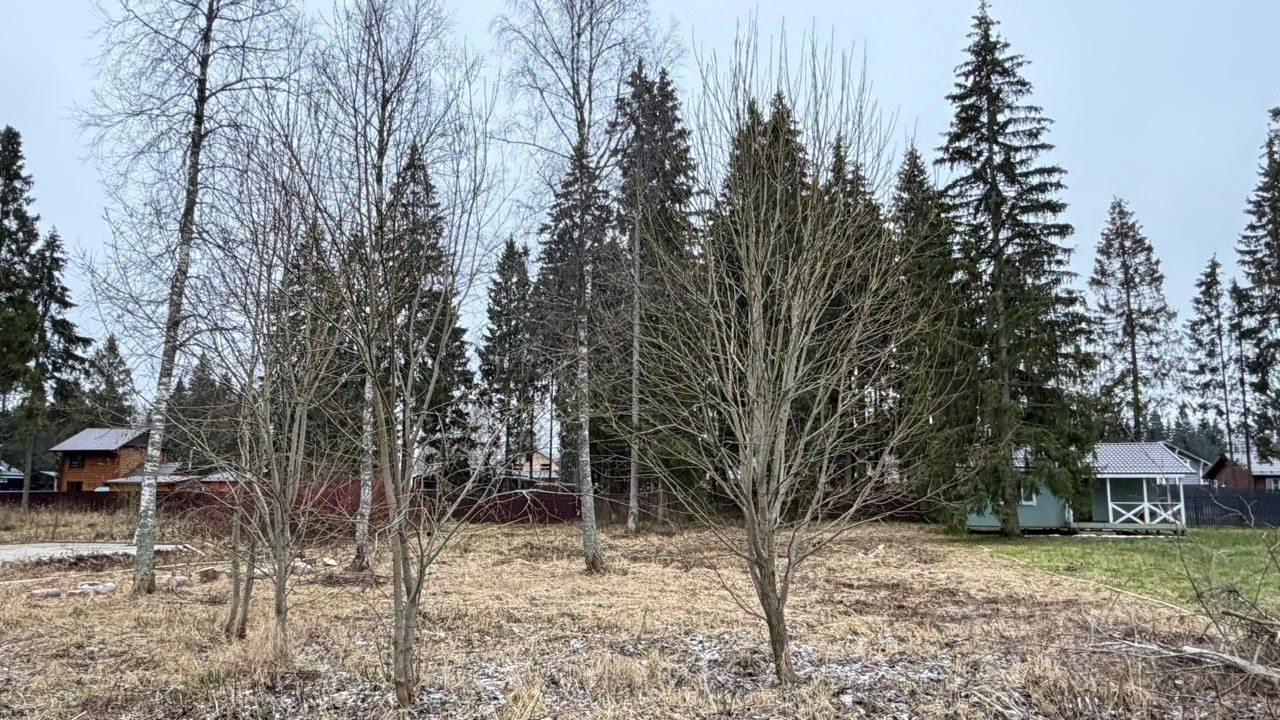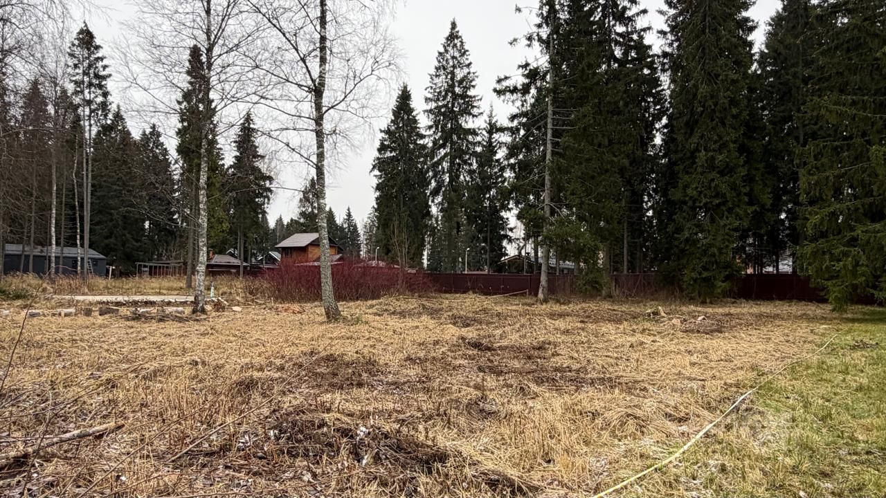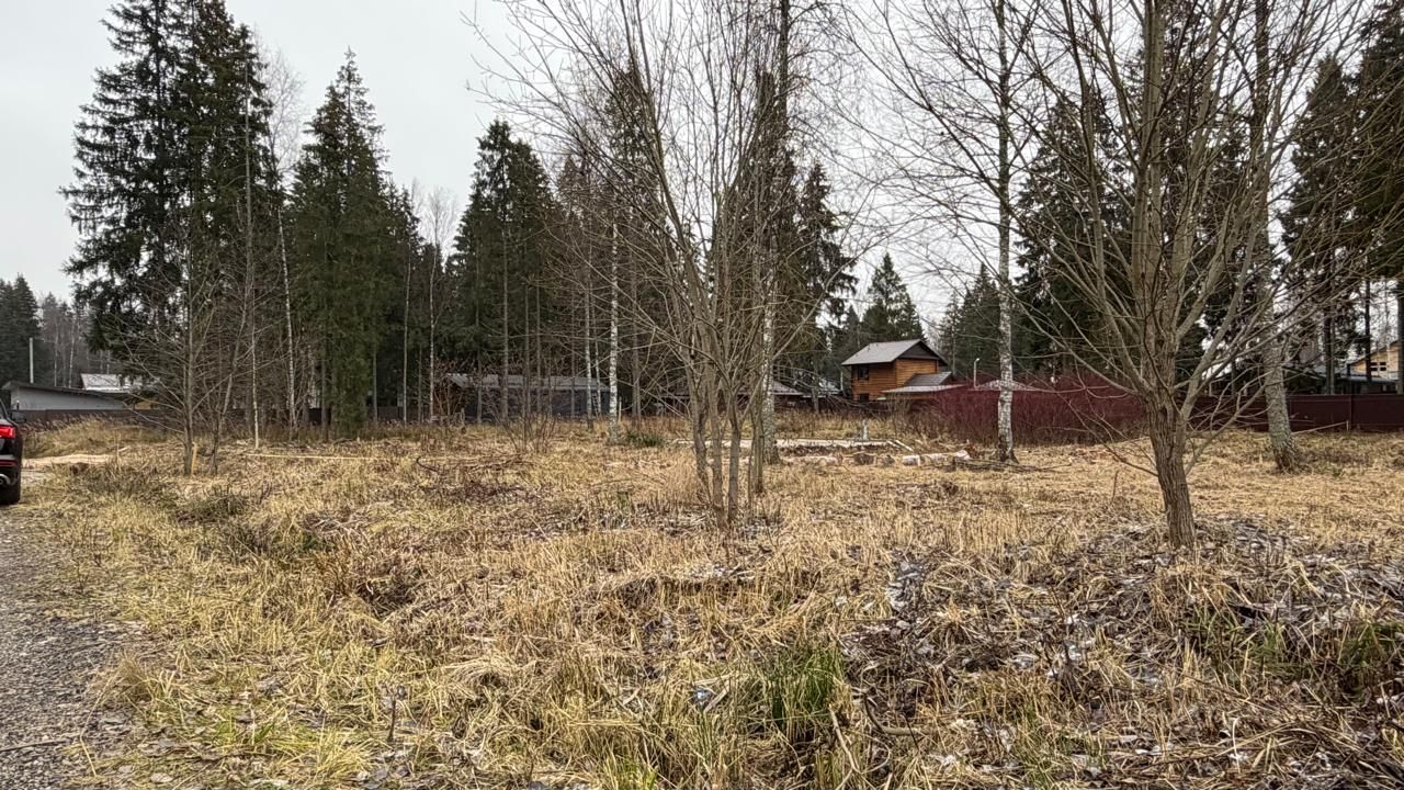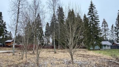 Часть участка уже облагорожена деревьями (сосны, березы, кустарники).