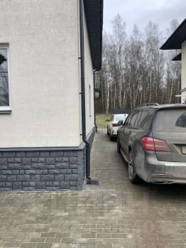 Вокруг дома сделано дорогостоящее мощение брусчаткой.