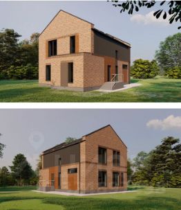 * Двускатная крыша без свесов, сразу переходя в вертикальные стены.