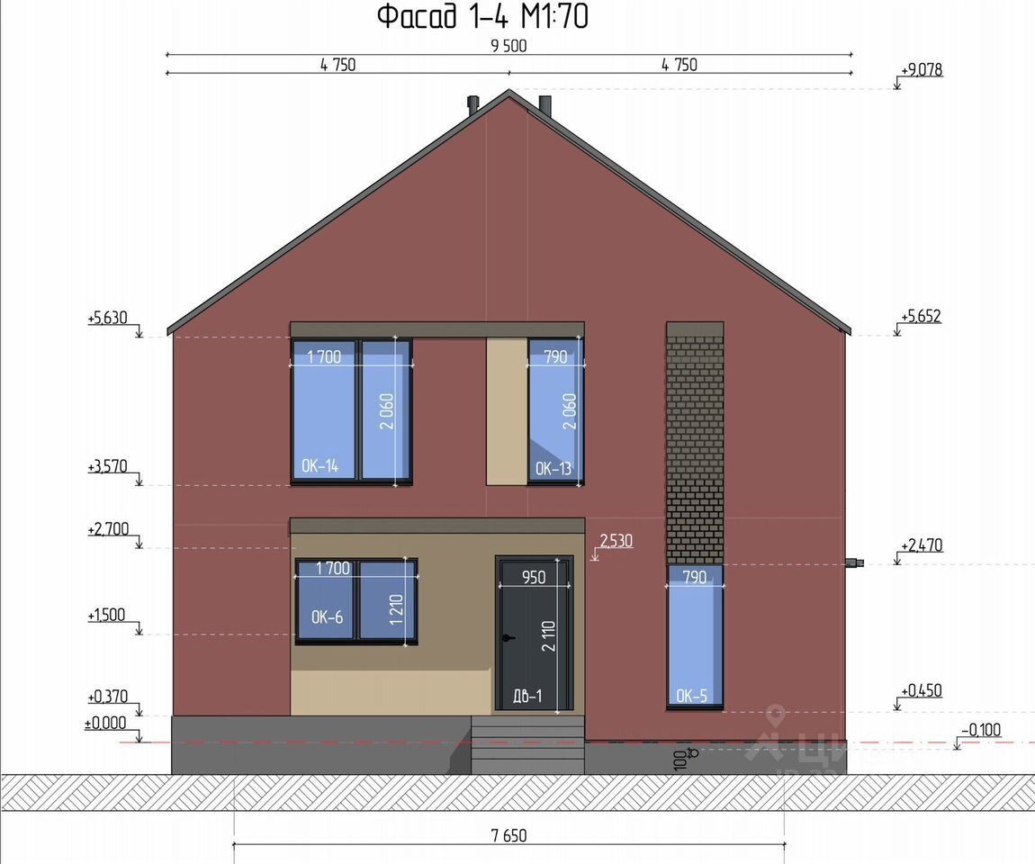 * Двускатная крыша без свесов, сразу переходя в вертикальные стены.