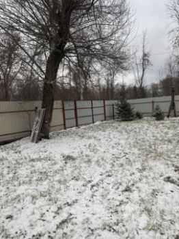 На участке площадью 12 соток есть две новые теплицы и грядки для огорода. Сам участок ухоженный, правильной прямоугольной формы и огорожен по всему периметру забором из проф листа.