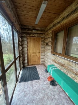 - из бревна, фундамент железобетонный, электрическое отопление и горячее водоснабжение (установлен котел), рассчитана для комфортного круглосуточного проживания.