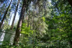 Высокие деревья (сосны) на территории создают уютную атмосферу отдыха и тишины.