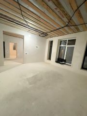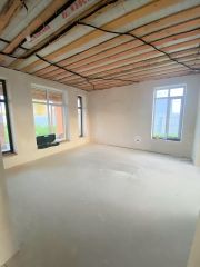 Сделаны теплые полы водяные, окна 70-й профиль, под крышей полноценная комната 60м2 высота 2.50м. Вся электрика сделана розетки и выключатели стоят.