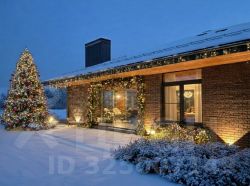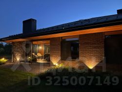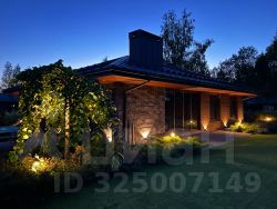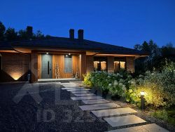 сочетание камня и дерева, отсутствие цоколя, внушительные свесы кровли, декоративная подсветка, придают облику дома статусный вид и подчеркивают его масштабность.