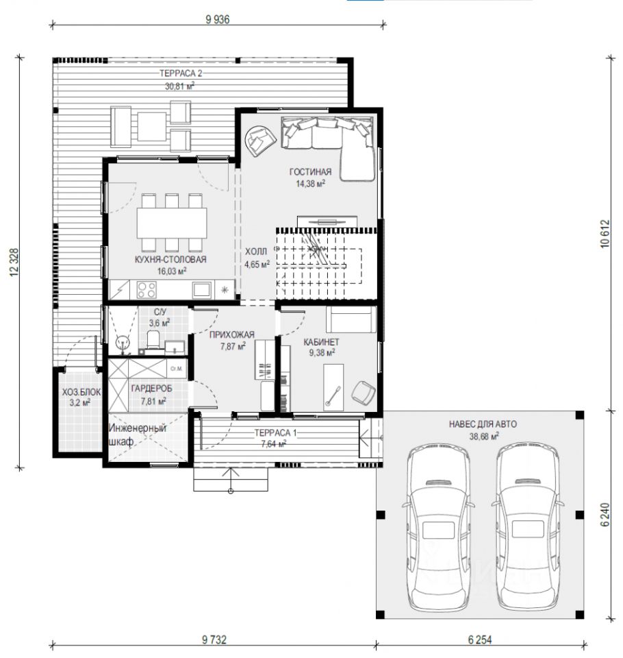 - Всего три санузла, две гардеробные комнаты, котельная и просторная терраса площадью 38 кв.м.