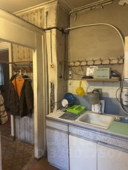 Ванная комната: душевая кабинка с бачком электроподогрев, автонабор воды из скважины, унитаз с электронасосом и Наливом от скважины, раковина с бачком, электпоподогрев. Слив по трубе в выгребную яму. На кухне кран - холодная вода поступление из скважины. Есть установленный фильтр для воды. Газ АГВ отапливает низ дома. Газовая плита.