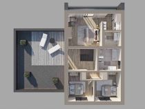 - 3 спальни, 3 с/у, 2 гардеробные, 3 террасы , 1 балкон