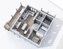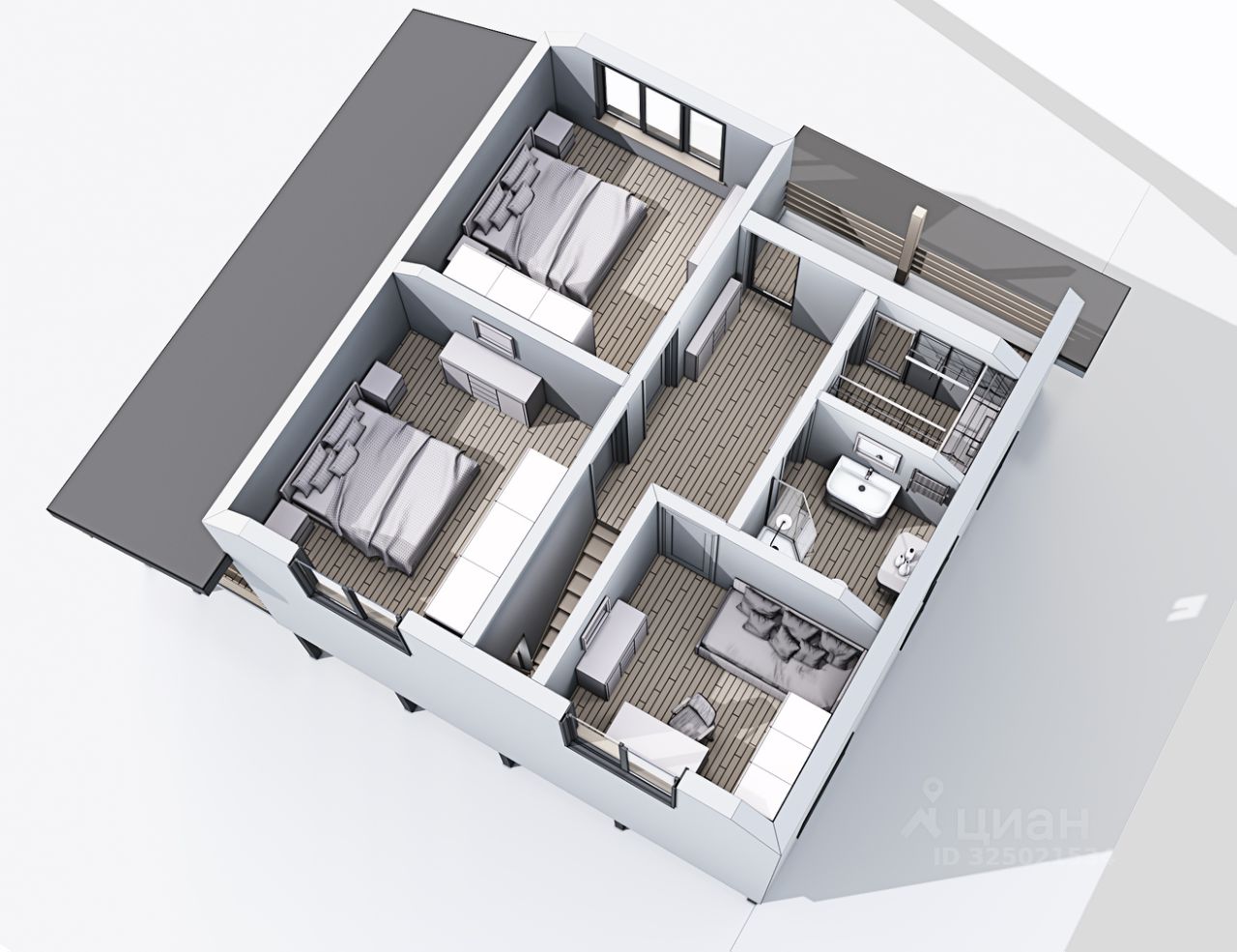 В доме 4 спальни по 15 кв.м, 2 санузла c ванной и душевой кабиной, гардеробная комната, балкон, прихожая, котельная, кладовка, большой чердак и большая кухня-гостиная с выходом на большую террасу.