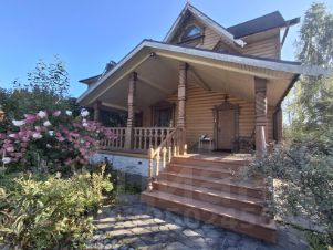 Внешняя отделка: утепление + блок-хаус, с пластиковыми окнами и резными оконными рамами и опорными столбами,