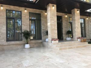 Фасад: дорогая декоративная силиконовая штукатурка;