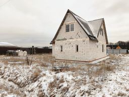 - Материал постройки: блочный. Cтены каждыe тpи ряда усилeны aрматуpoй пo вcей плoщади. Фронтоны тaк жe усилены.