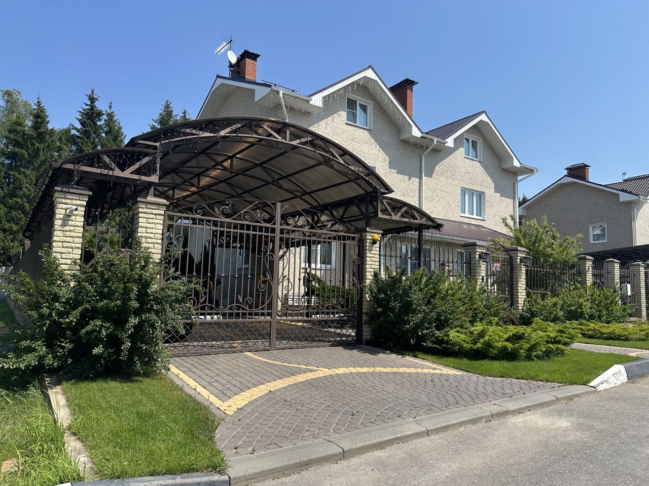 Продается просторный трехэтажный дом (дуплекс), с супер баней, бассейном и домом для персонала. Московская прописка! БЕЗ дополнительных вложений! евро ремонт с качественным дизайном создает уютную атмосферу. На первом этаже расположена просторная кухня, вся техника ведущих брендов, гостиная с настоящим огромным камином, большая гардеробная с вместительными шкафами, котельная, постирочная со стиральной машинкой, санузел. На втором этаже расположены две комнаты и санузел с ванной. Третий этаж одна большая мастер спальня и ванная комната с кабиной и большим джакузи для релакса.