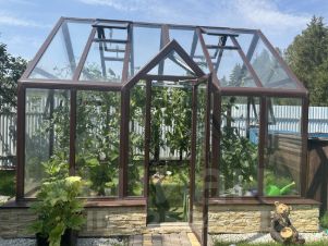 На территории участка расположен огромный бассейн 8х4, с подогревом, теплица 2х3, с автополивом, подогревом и УФ лампами), утепленный вольер для большой собаки, так же на участке имеются плодовые взрослые деревья, яблони, груши, черешни, плодоносят и радуют своими вкусовыми качествами, по мимо плодовых имеются декоративные кустарники и деревья. На всей территории с деревьями, кустарниками и газоном установлен автополив.