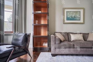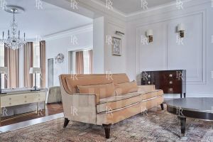 Корпусная мебель, гардеробные шкафы, комоды, консоли и входная дверь выполнены на заказ по уникальной технологии мастерской Mrs Ruby.