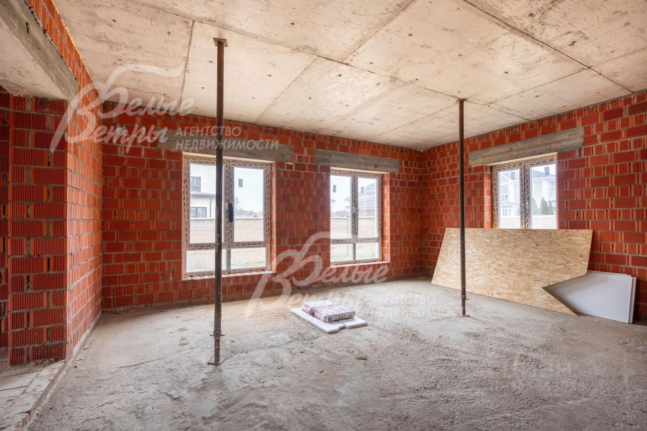 Описание внутренней отделки: дом под отделку можно реализовать авторский проект интерьера. Возведены стены, установлены окна. На второй этаж ведёт лестница на бетонном основании.