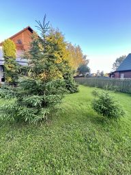 Выполнен ландшафтный дизайн: высажены туи, можжевельники, ели, розы, смородина.