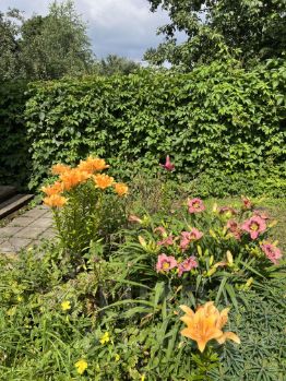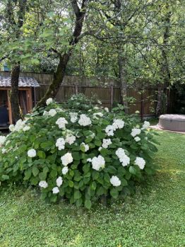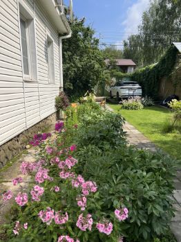 Участок ухожен, огорожен высоким забором, с зонированием и местами для отдыха. На участке множество фруктовых деревьев, декоративных кустарников и цветов.