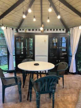 3. Комфортная беседка с водопроводом — можно использовать как летнюю кухню или зону отдыха в любую погоду.