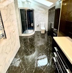 На 1 этаже: гостевая комната, кухня 25м2, гостиная 40м2, санузел