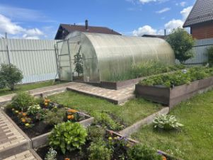 Участок разработан, ухожен, сделана теплица, посажены плодовые деревья и кусты, ели, туи. Участок сухой, сделана ливневая канализация с выводом за пределы участка. Участок огорожен металлическим забором с автоматическими воротами.