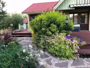Дом, с жилой площадью 191 кв. м и с мансардным этажом, выполнен по проекту из Швеции, полностью из шведских материалов, шефмонтаж инженера из Австрии, по каркасной технологии. Фундамент - монолитная плита. Кровля - черепица. Стены первого этажа облицованы кирпичом и отштукатурены. На каждом этаже есть совмещённый санузел. Коммуникации: электричество 16 КВт 380 В, центральная канализация, водопровод (в доме медными трубами) и скважина. Установлены вентиляционная система и система водоочистки. Газ по границе. Дом очень тёплый.