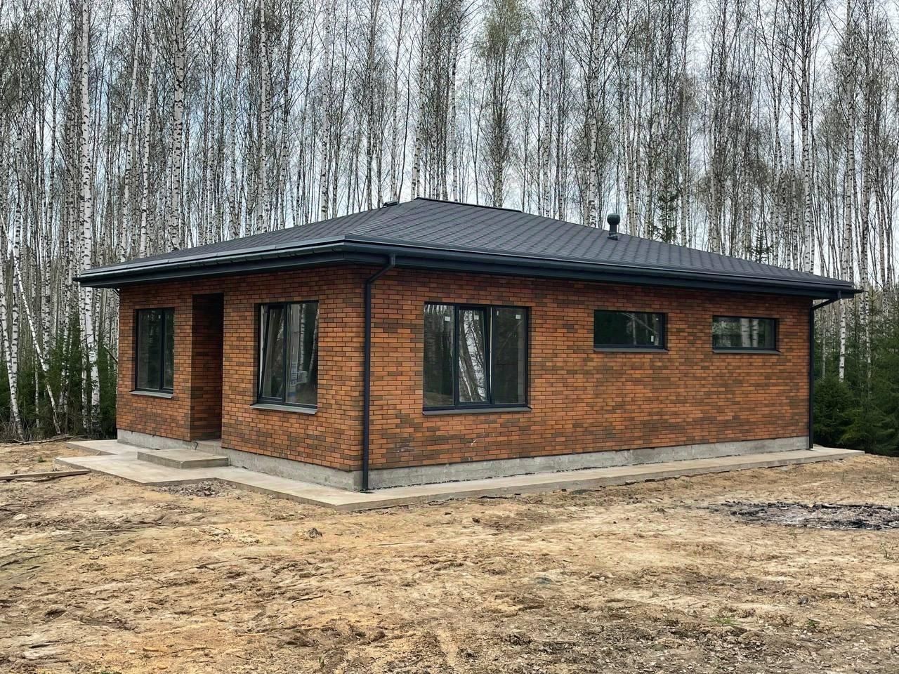 Фундамент монолитная плита. Стены газобетон и облицовочный кирпич премиум класса. Долговечная четырехскатная вальмовая крыша из гибкой черепицы. Есть фотоотчёт полностью всех этапов строительства для каждого дома.