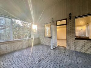 На веранде установлены пластиковые окна-слайдеры, которые в теплое время позволяют отдыхать на свежем воздухе.