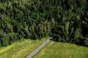 - Закрытая забором территория, въезд под шлагбаум