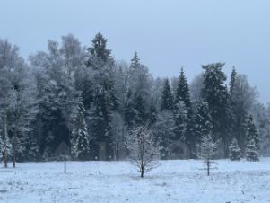Участок 6 соток, огороженная территория, ворота и калитка, на территории растут молодые ели.