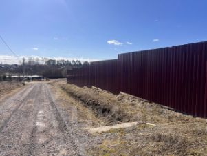 Земельный участок огорожен, ровный и сухой, посажены деревья.