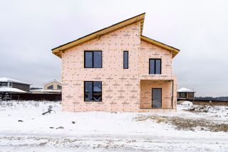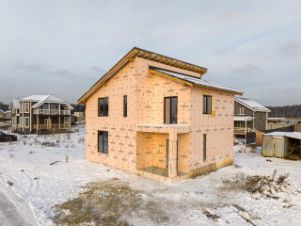 Двухэтажный современный дом построен из высококачественных материалов (для тех кто разбирается в строительстве: стены первого этажа из бетонных колонн и залиты монолитным пенобетоном , второй этаж из 300мл блоков D500/B-3.5/f100 компании Бонолит, фундамент монолитная плита из качественного бетона марки M300 B22.5F150W6П4, все древесные материалы тщательно обработаны огнебио защитой, тройные стеклопакеты Rehau Intelio80).
