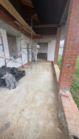 1-й этаж из газоблоков: просторная терраса, большая кухня-гостиная - сердце дома, где собирается вся семья или друзья, а также большая спальня с теплыми полами.