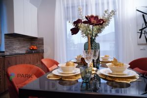 Установлена красивая кухня, которая полностью оборудована всей необходимой техникой и холодильником.