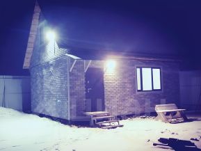 Освещение сделано: фонарь на столбе на общей дороге, освещение на въездной группе (на фото видно), два прожектора на доме.