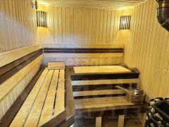 Отдельная баня с мастерской, комнатой отдыха с диваном и креслом (полноценная гостевая комната), раздевалка и парная.